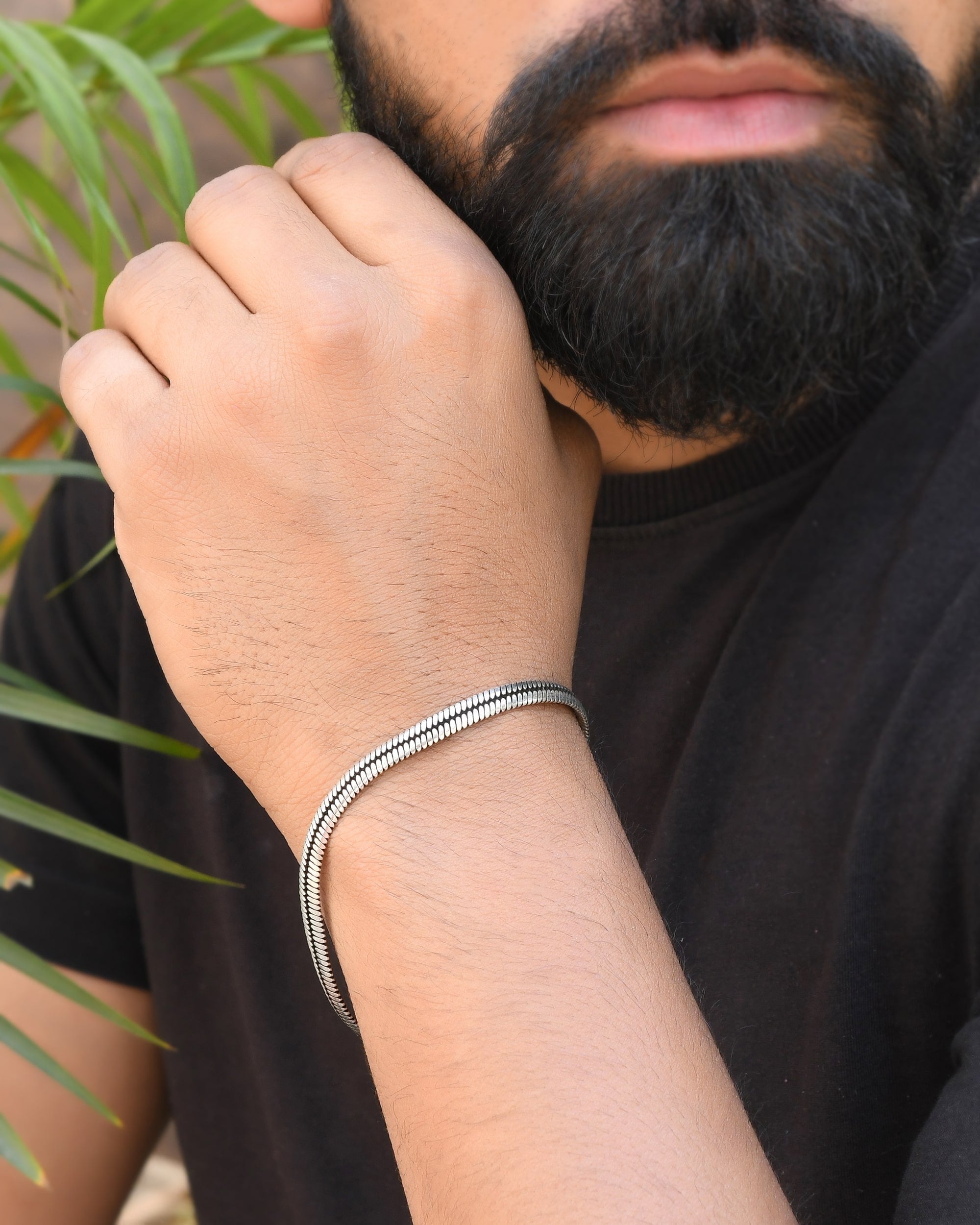 Expertly crafted in Turkey, this premium flat chain Silver bracelet boasts a sleek, matt finish. Enhance your style with this timeless accessory that exudes quality and sophistication.