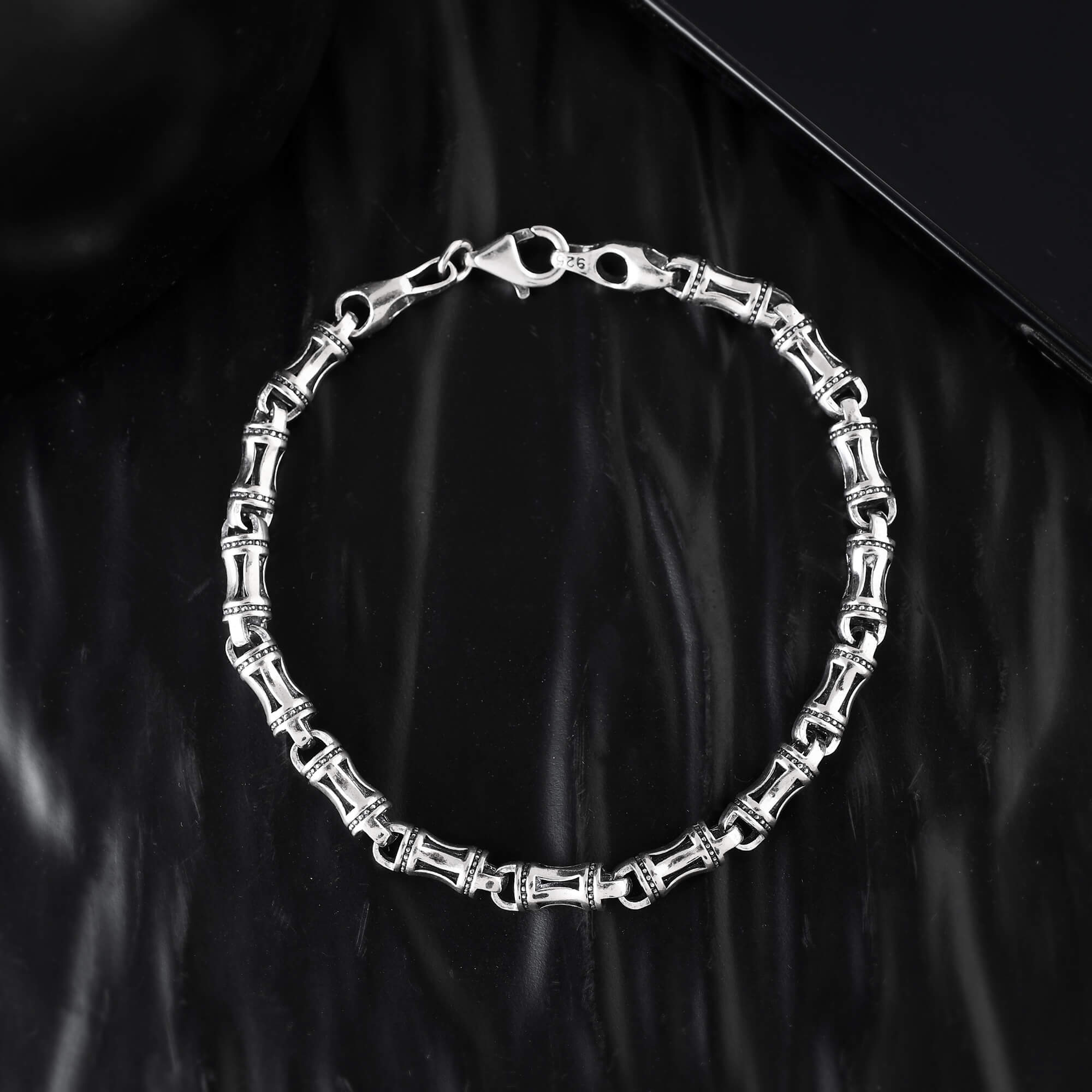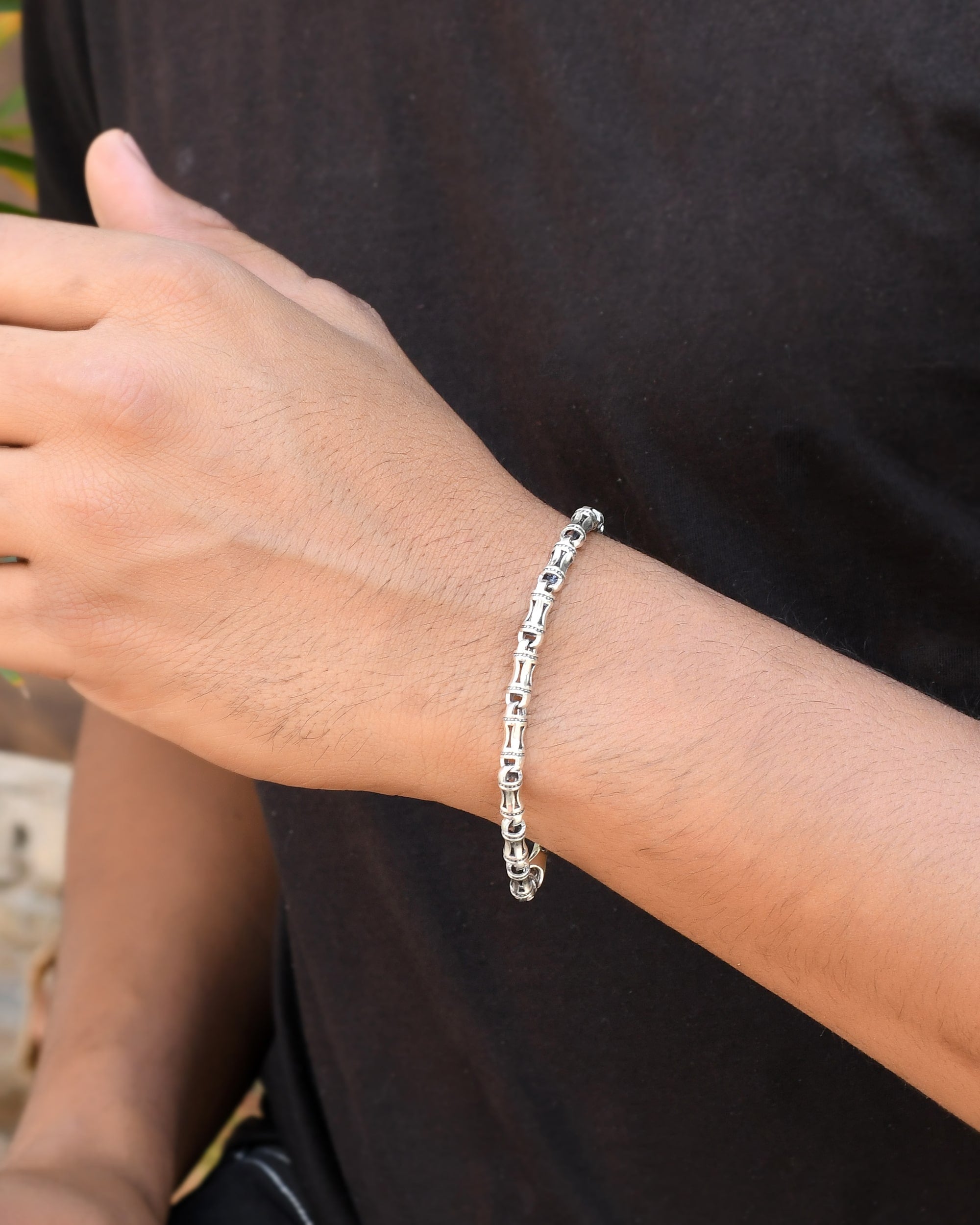 This Lunar Italian Silver Bracelet features expertly crafted Italian silver adorned with sleek black stones. With its intricate design and impeccable craftsmanship, this bracelet is the perfect addition to any jewelery collection. Stylish and sophisticated, this bracelet will elevate any outfit.