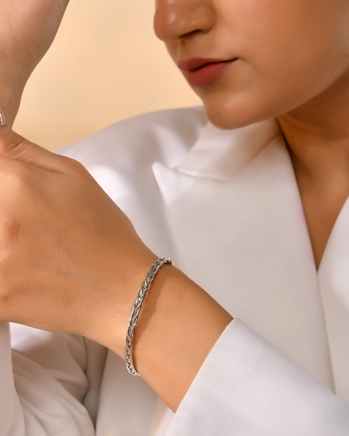 Slow art. Fully hand woven without any machine assistance, one artisan carefully shapes every link. Polished in a way to make matt finish look