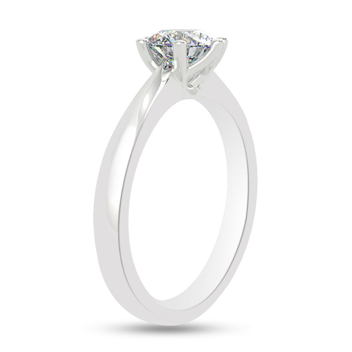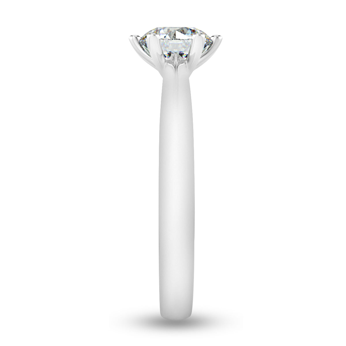 A true design masterpiece, Flawlessly engineered, the six-prong setting virtually disappears and allows the brilliant diamond to float above the radiant 18k rose gold plated band and into the light, resulting in a ring so beautiful