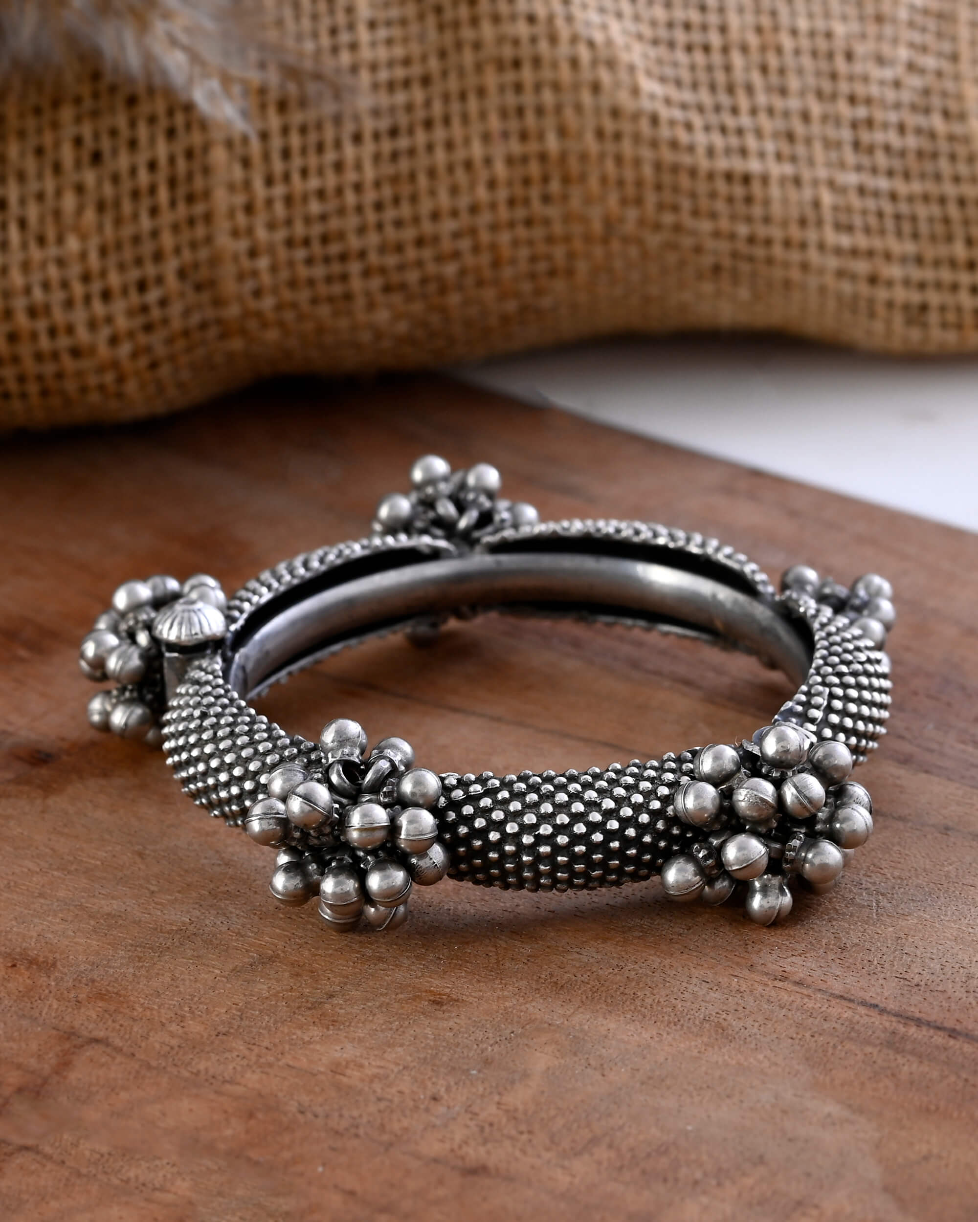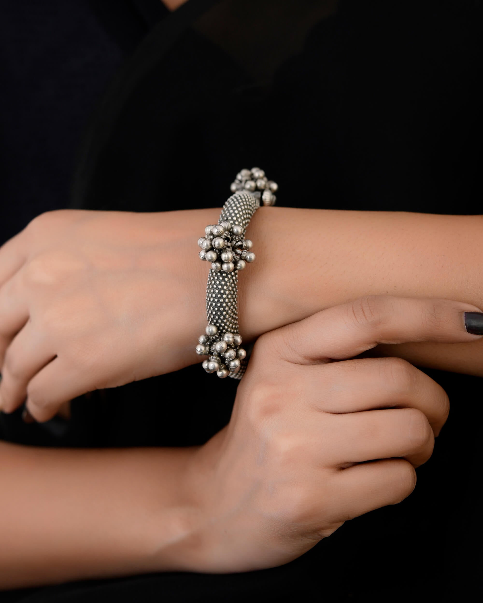 Crafted with premium quality materials, the Amrita Silver Bangle boasts a unique and intricate design that is sure to elevate any outfit. As an expert in the industry, we stand by this bangle's exceptional quality and one-of-a-kind design. Perfect for any occasion, make a statement with this beautiful piece.