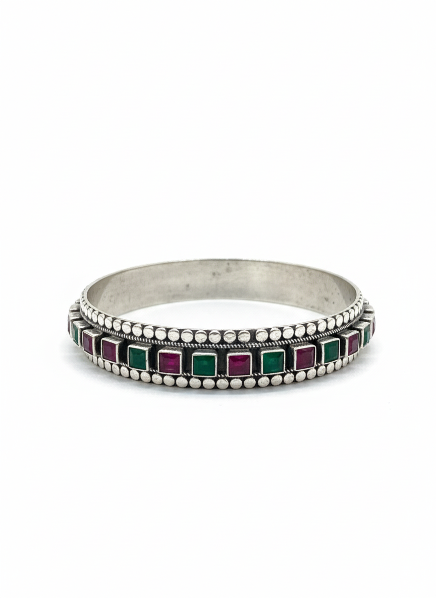 Rajwada Silver Cut Stone Bangle