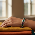 Elevate your elegance with the Rajwada Bangle, a masterfully crafted piece inspired by royal heritage. This bangle showcases intricate mosaic patterns that reflect traditional artistry, offering a timeless accessory that enhances both contemporary and classic outfits. Its finely detailed design ensures a refined finish, making it a distinguished addition to any jewelry collection. Ideal for formal occasions or cultural celebrations, the Rajwada Bangle brings a regal touch to your ensemble with expert craftsmanship.