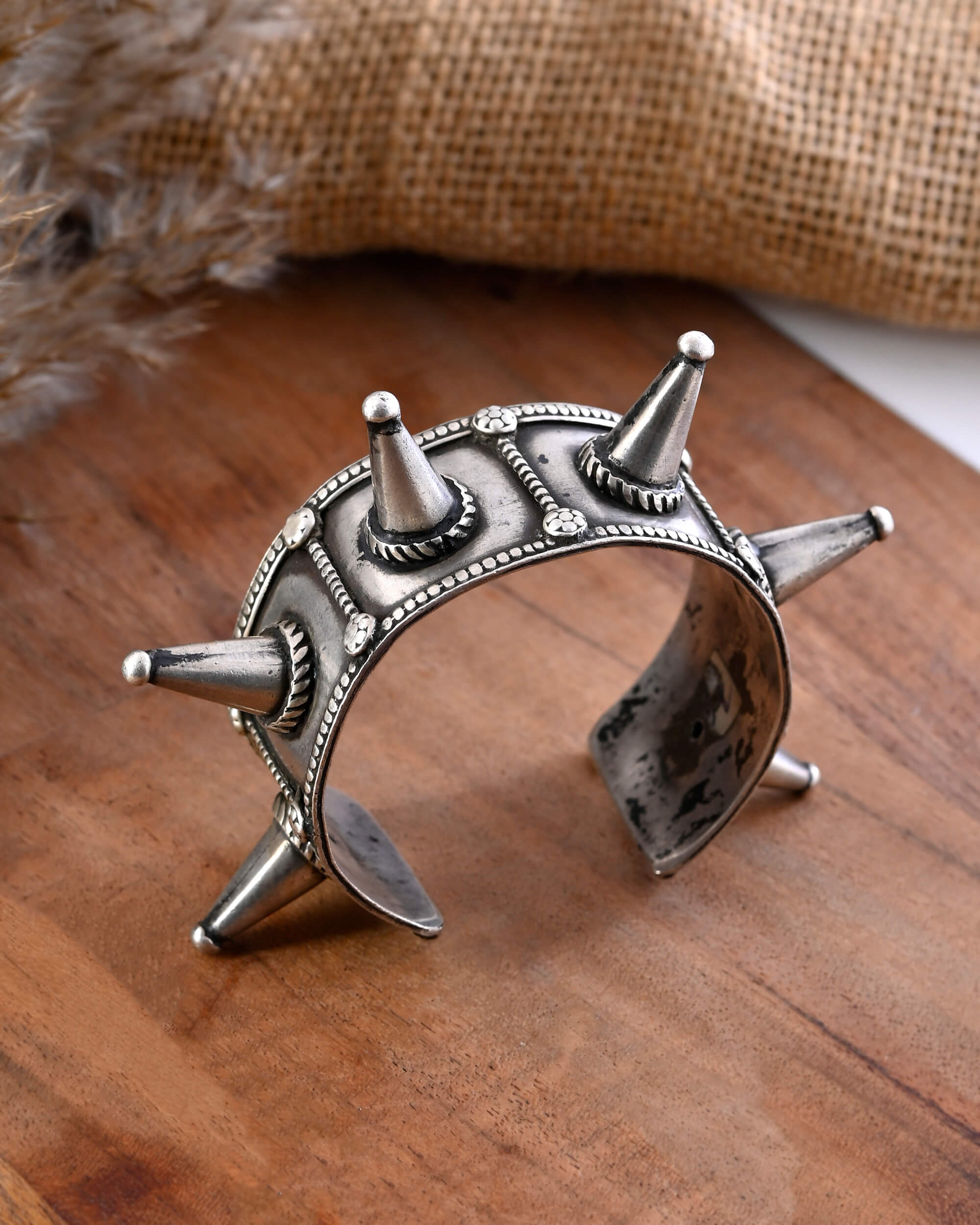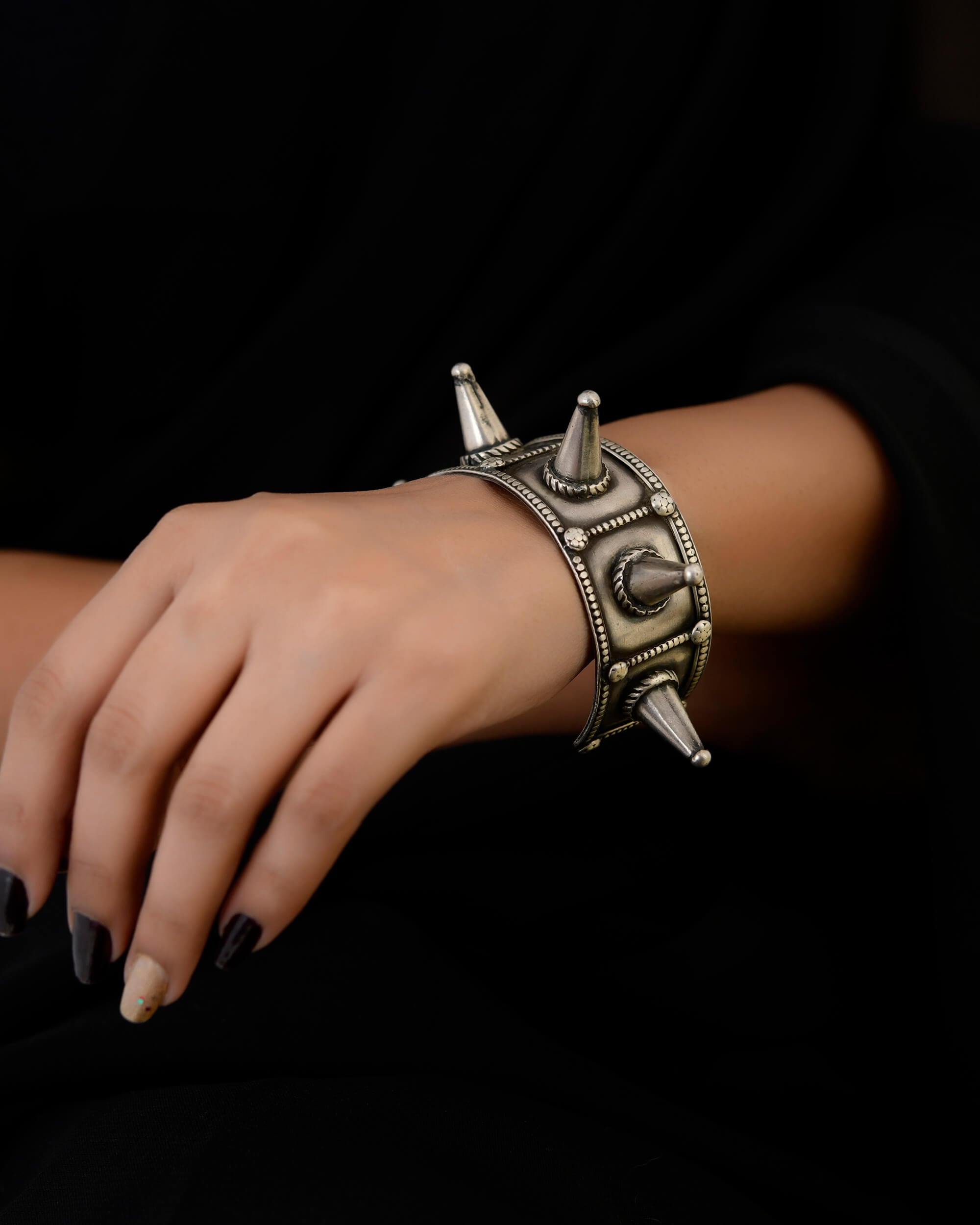 Expertly crafted from premium quality silver, the Damini Bangle Cuff showcases a unique and elegant design. With its luxurious material and eye-catching design, this cuff is the perfect statement piece for any occasion. Elevate your style with the Damini Bangle Cuff.