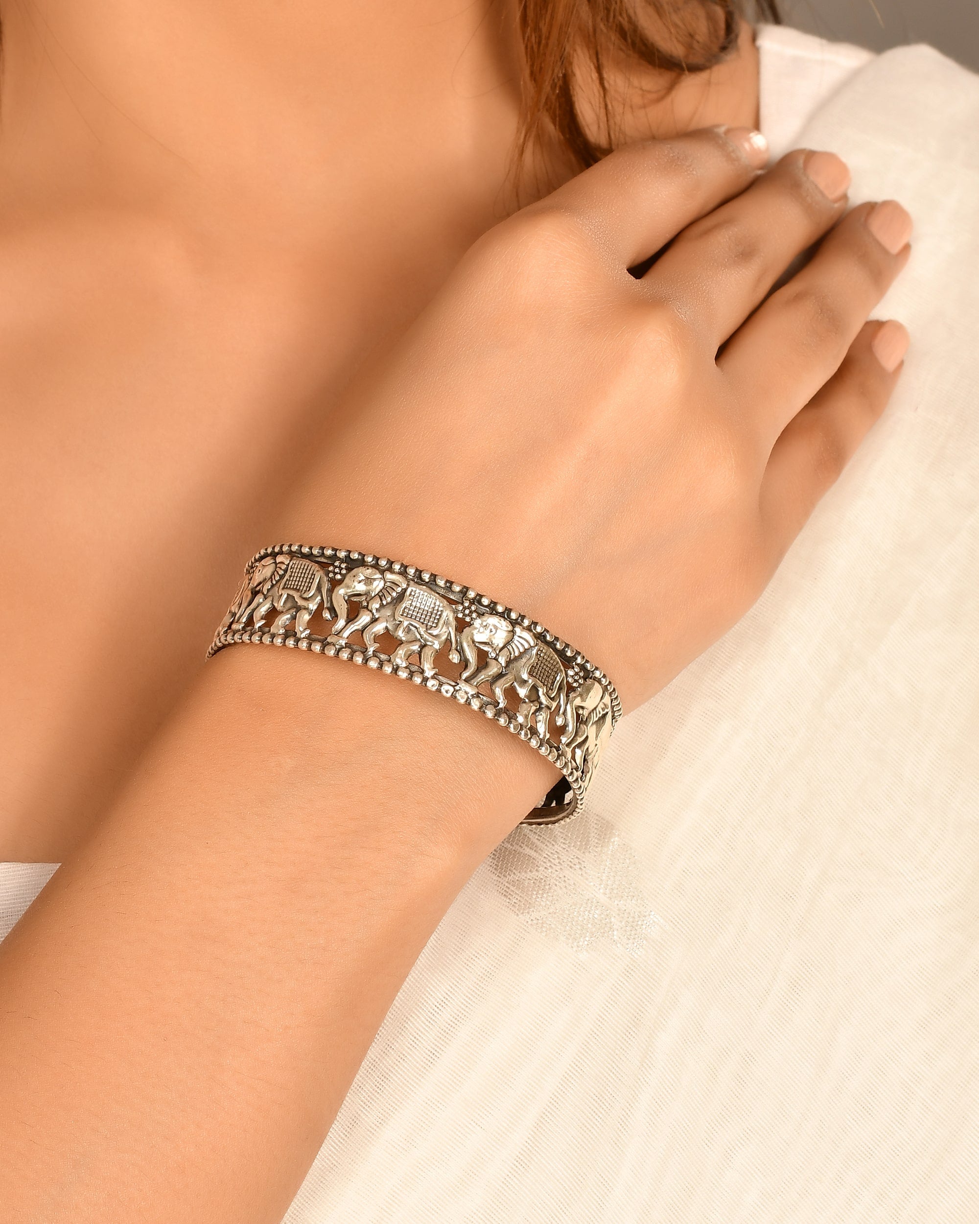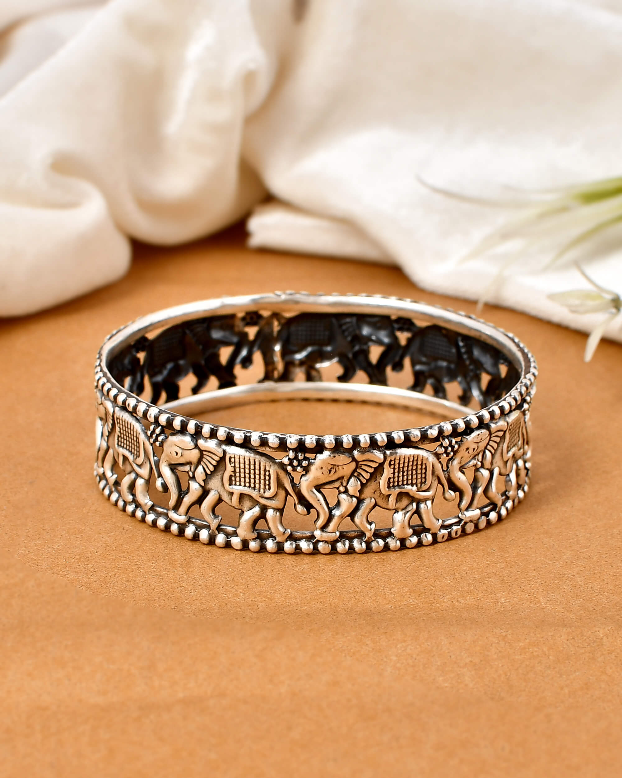 Silver Bangle with elephant motives