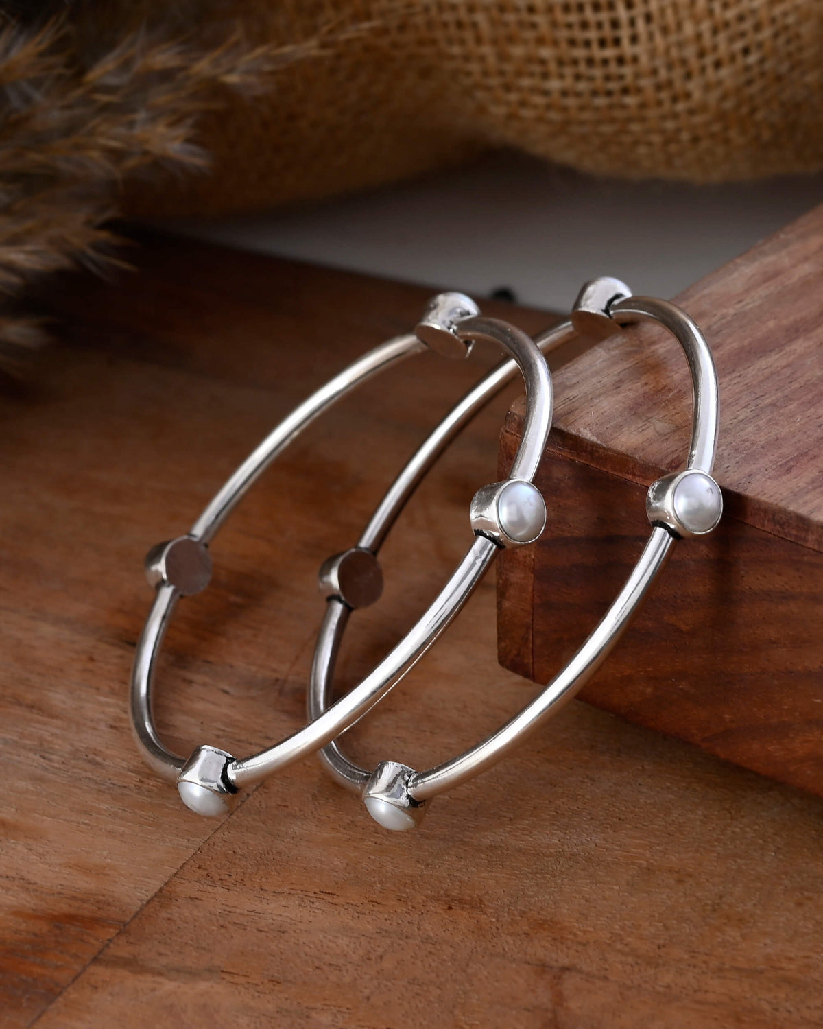 Hansika Pearl Silver Bangle