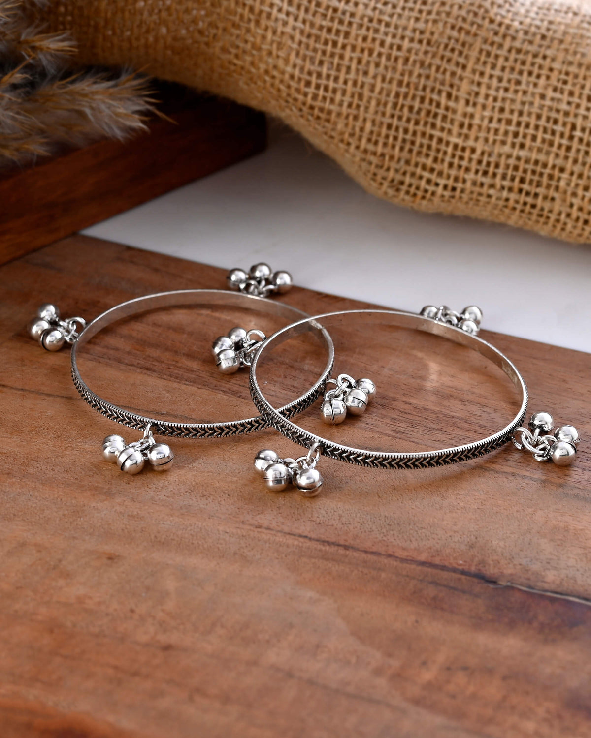 Crafted with ultimate dedication and expertise, the Samaira Ghungroo Silver Bangle boasts a premium quality and a unique design. Elevate your style and make a statement with this exquisite piece, perfect for any occasion.