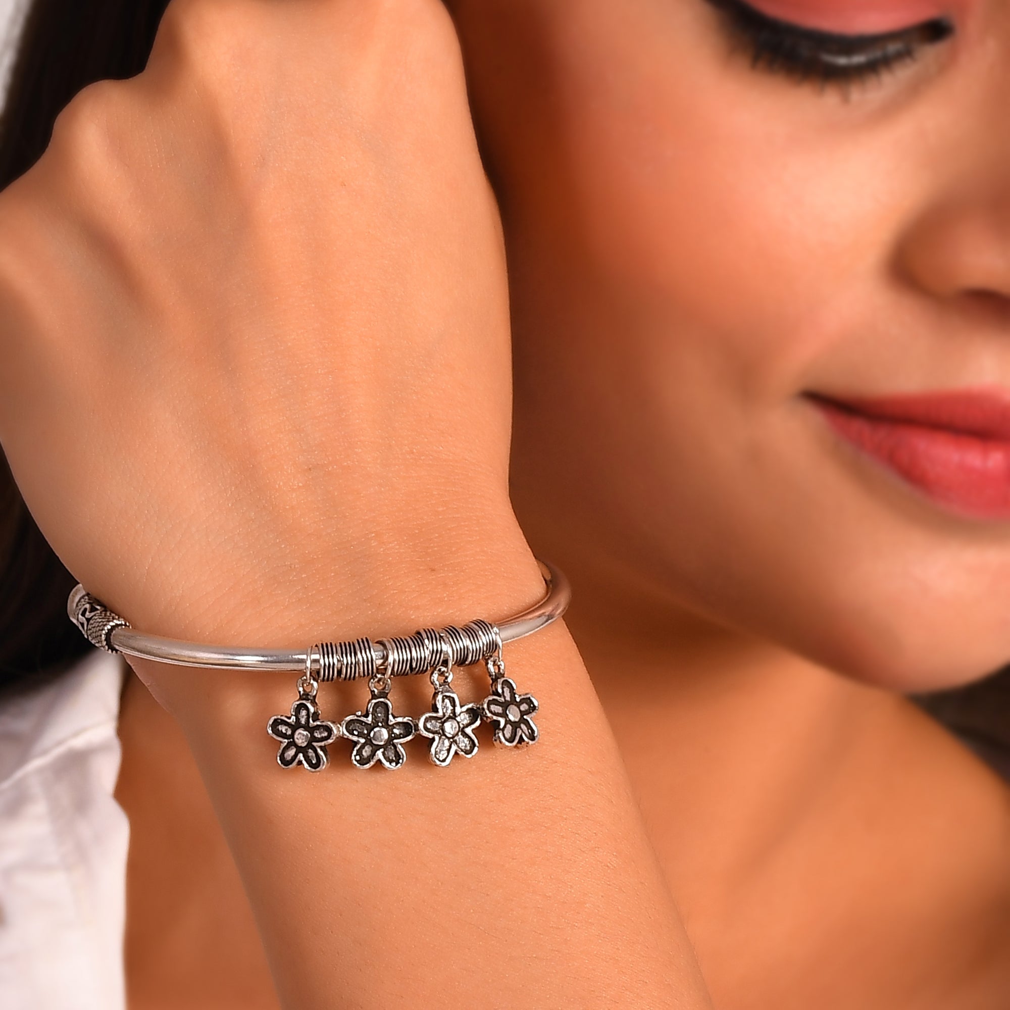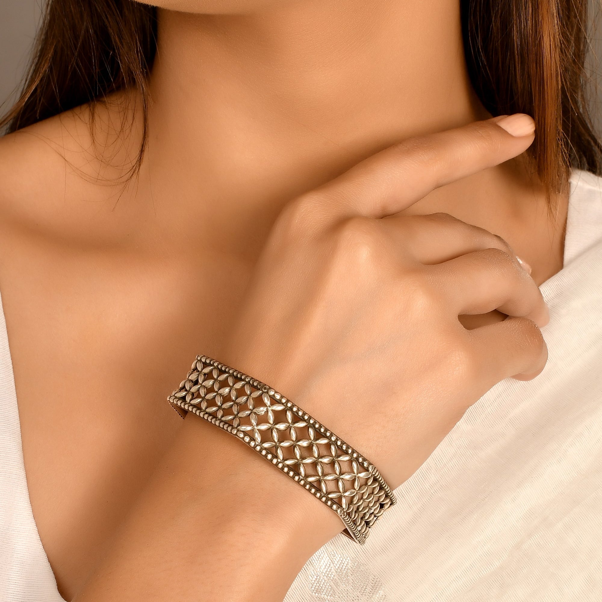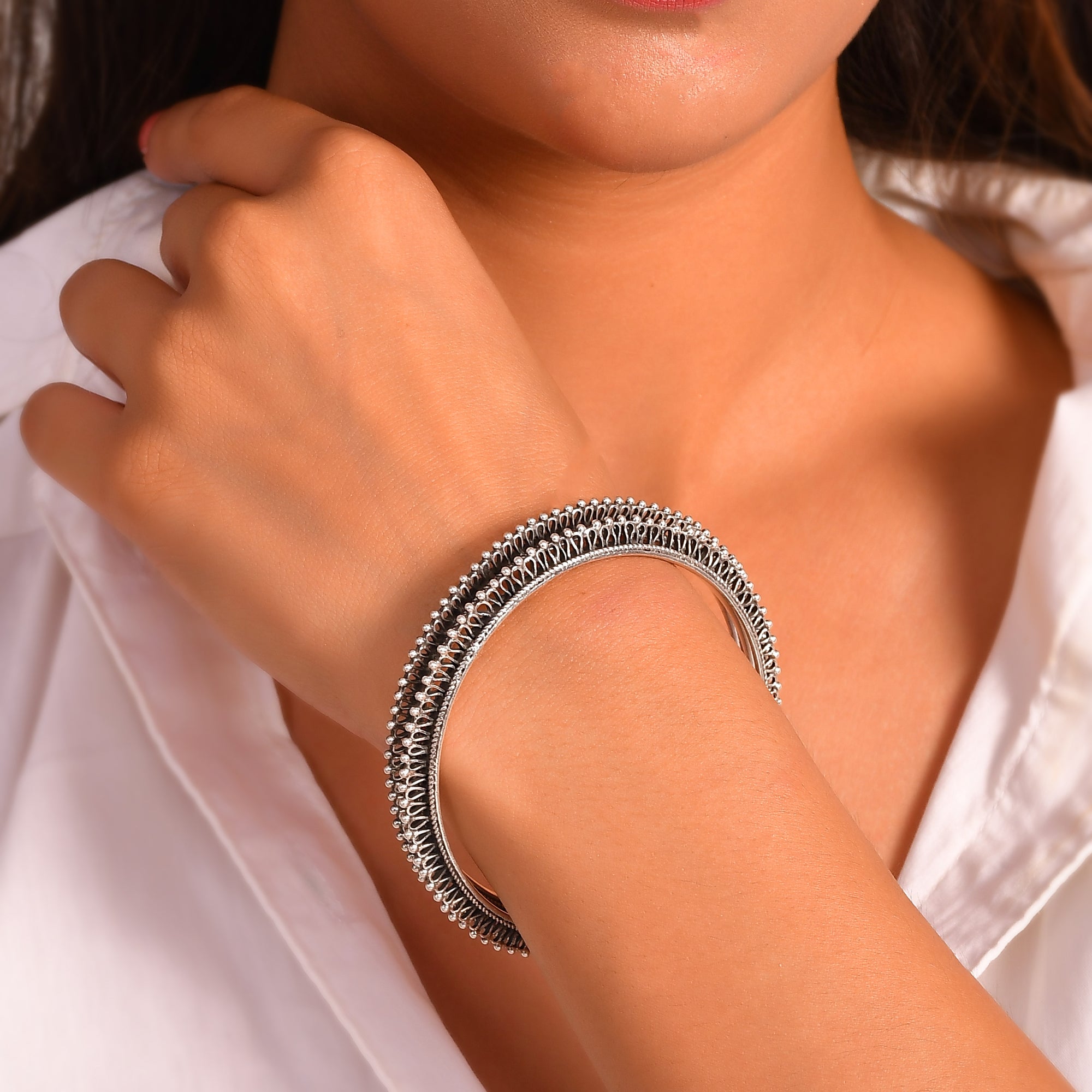 Silver jewellery carries or history that also speaks about the patterns, textures and their amazing beauty. It has always been a powerful jewellery piece in Indian culture because it reflects the traditions of the community that creates every piece with emotion. At Meera Jaipur, we try to bring this spirit into the world of modern fashion. The handcrafted tribal bangles combine the heritage with the clean and contemporary designs, loved by women who adore the meaningful accessories. Each bracelet comes from the hands of skilled artists who have learnt their craft through generations. They follow old techniques that preserve the integrity of the tribals. You can see this in the carving, shape, and the handcrafted polish, first of all, has an intention expressive without overpowering the look.