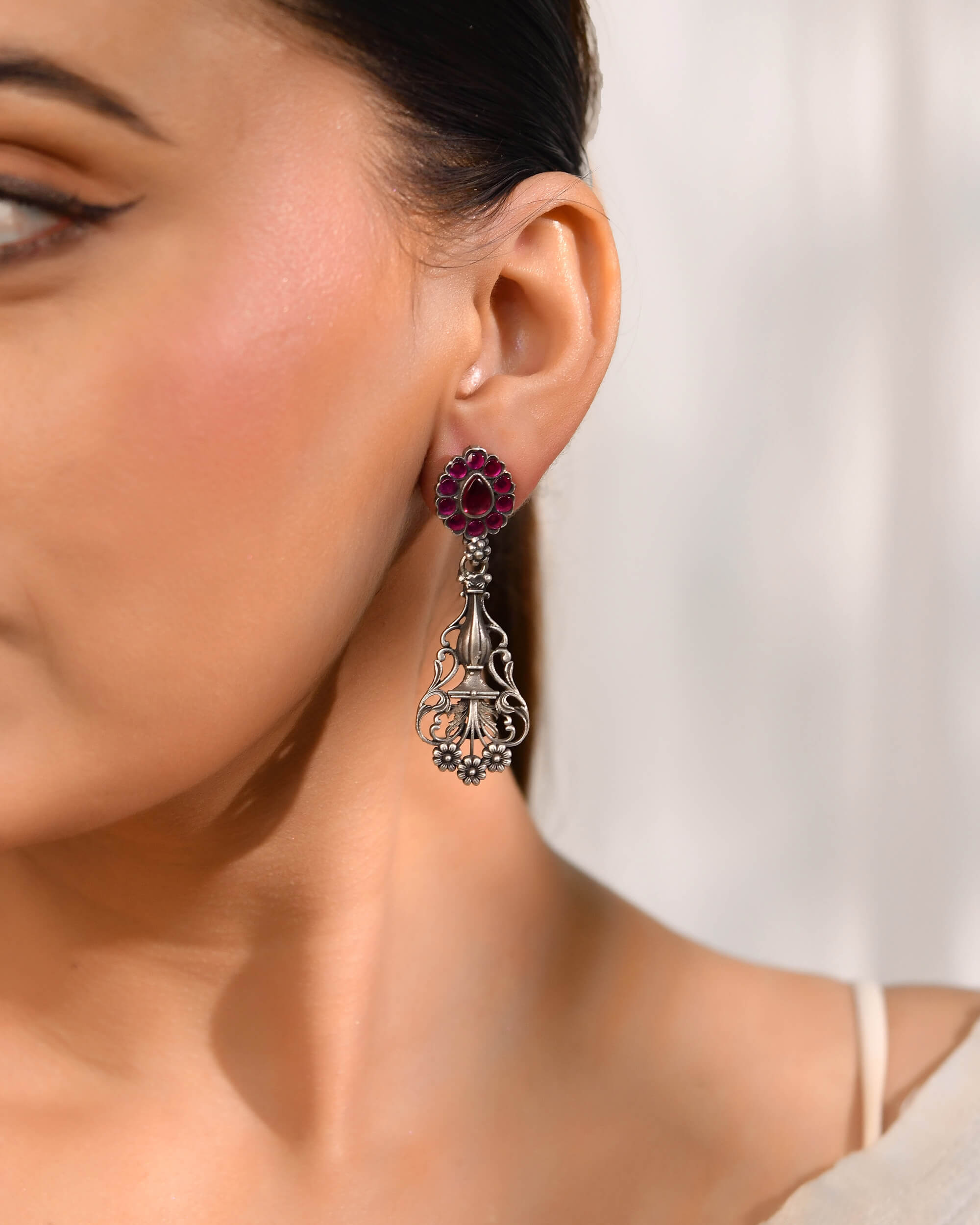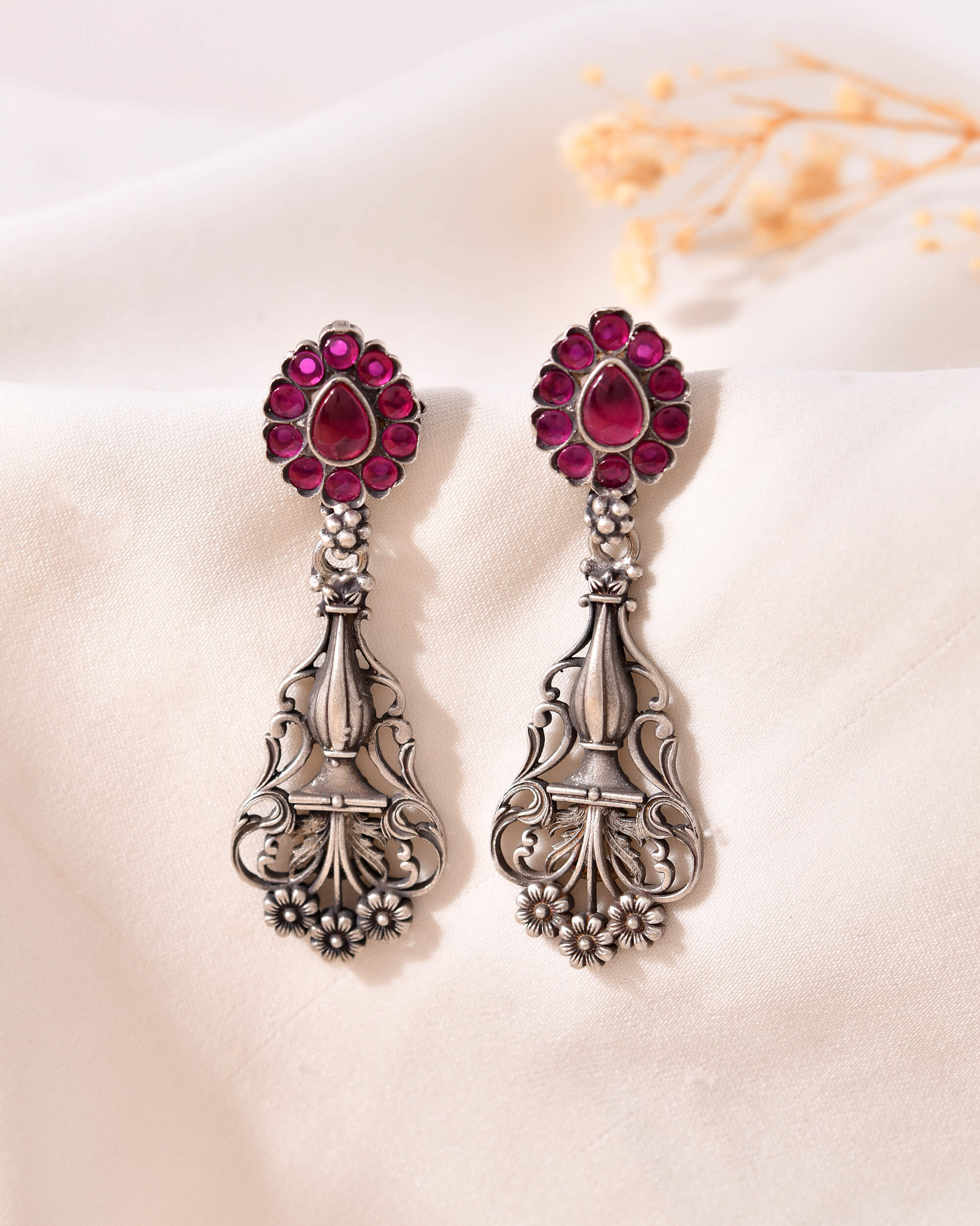Pushp Veena Silver Earrings