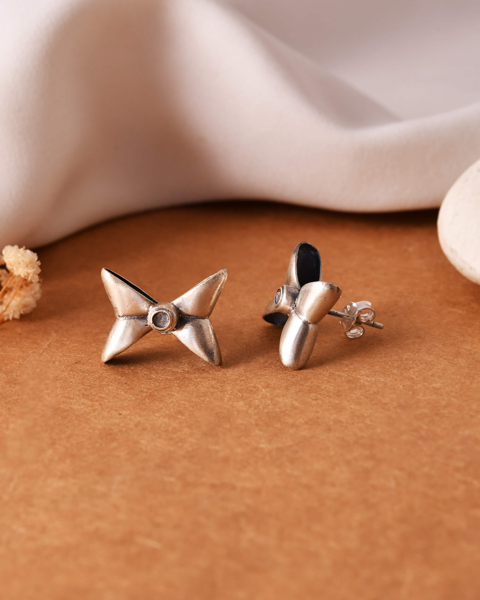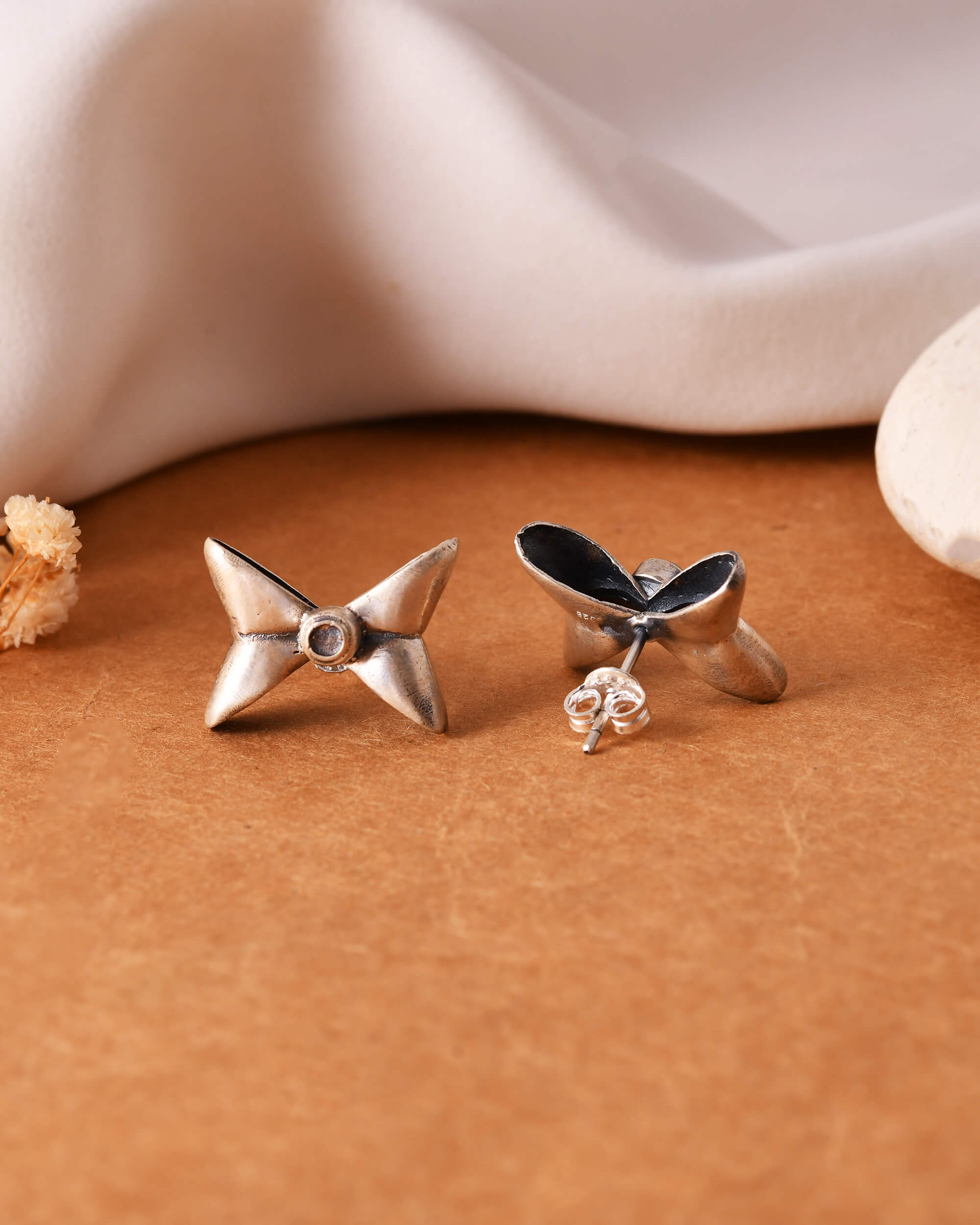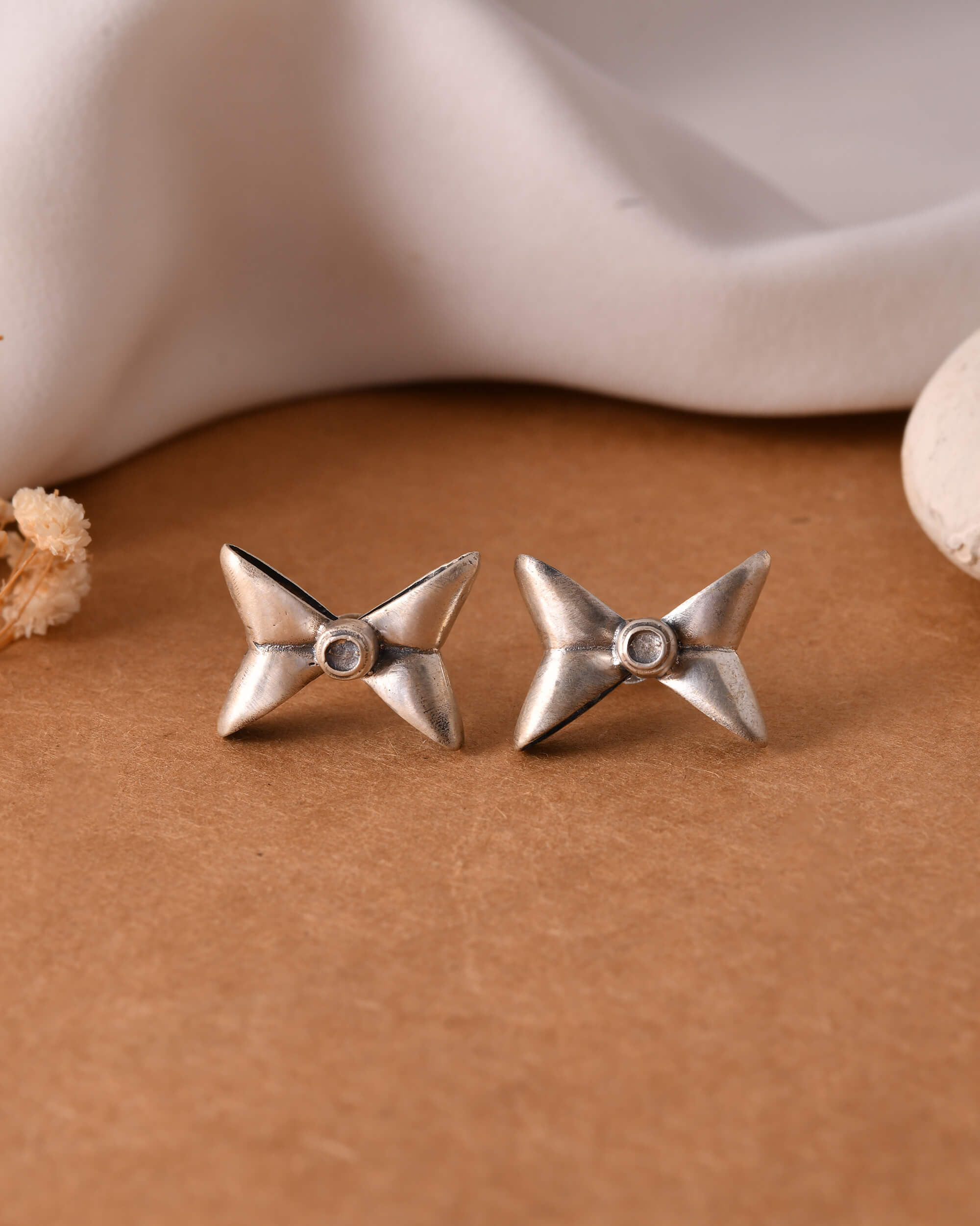 High bow silver earring studs