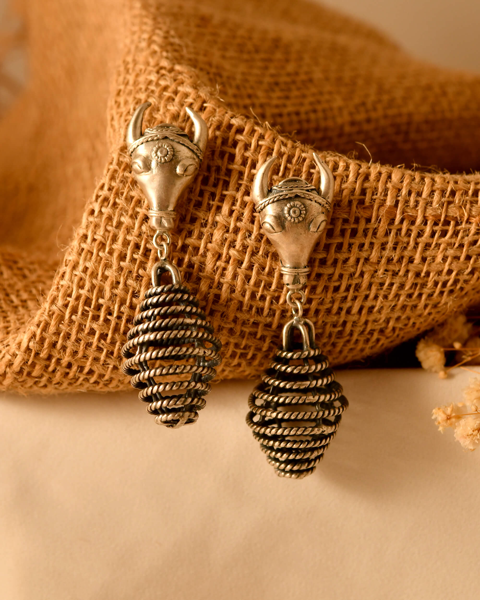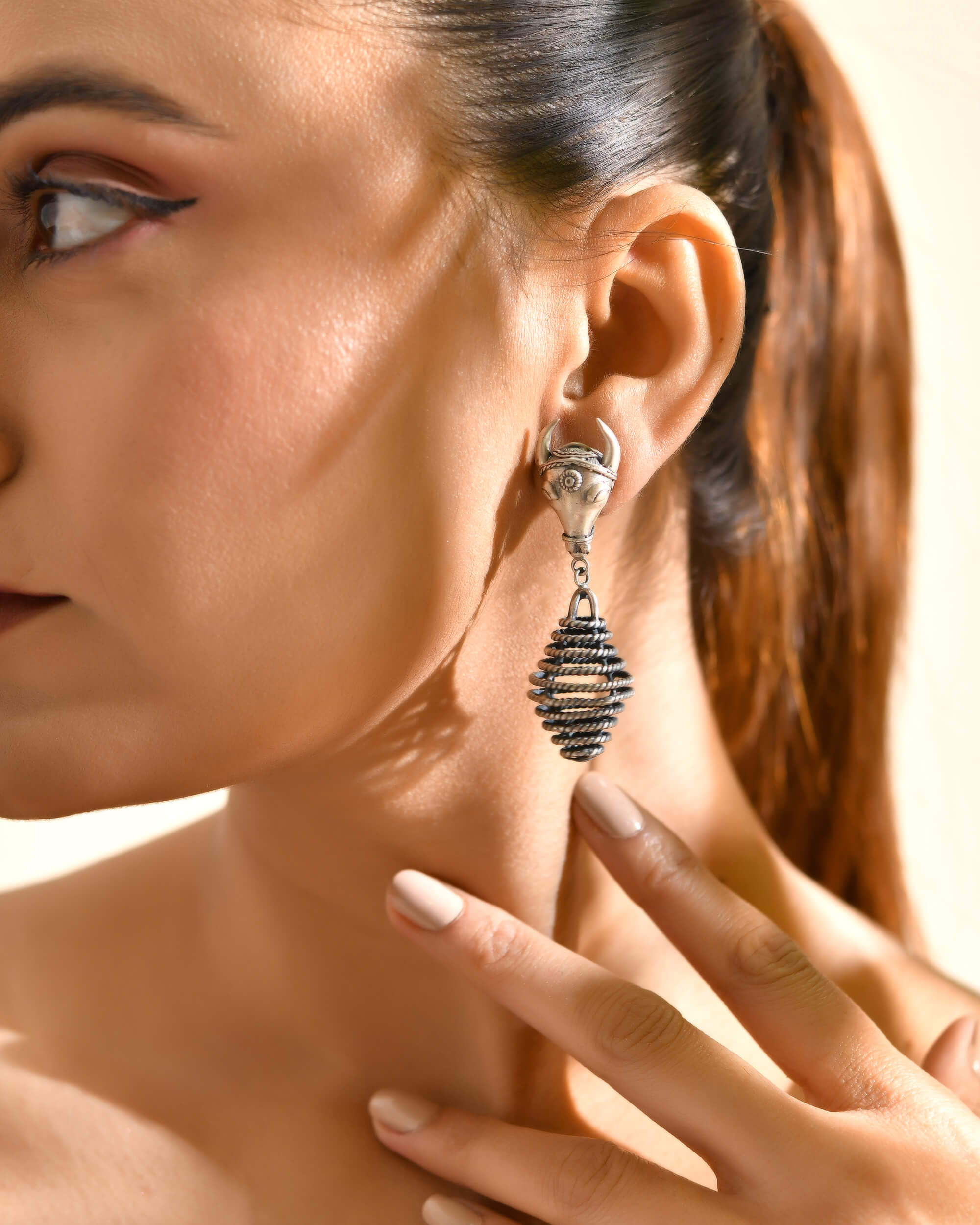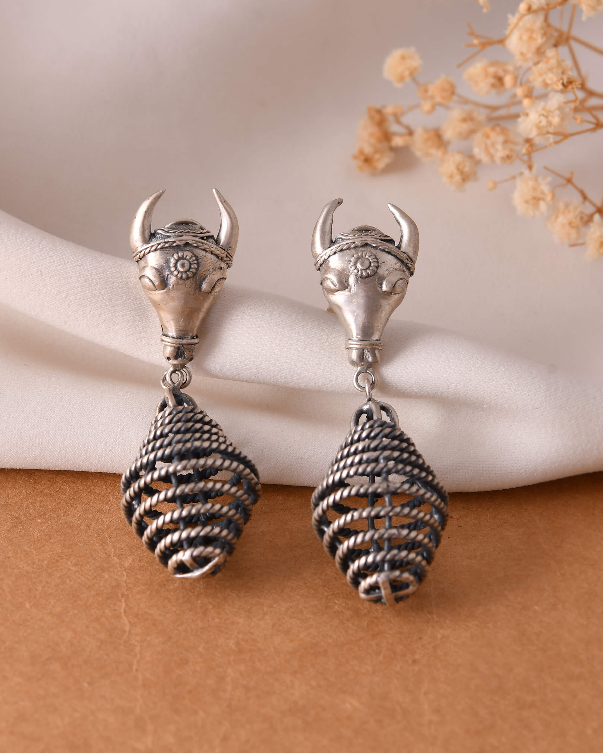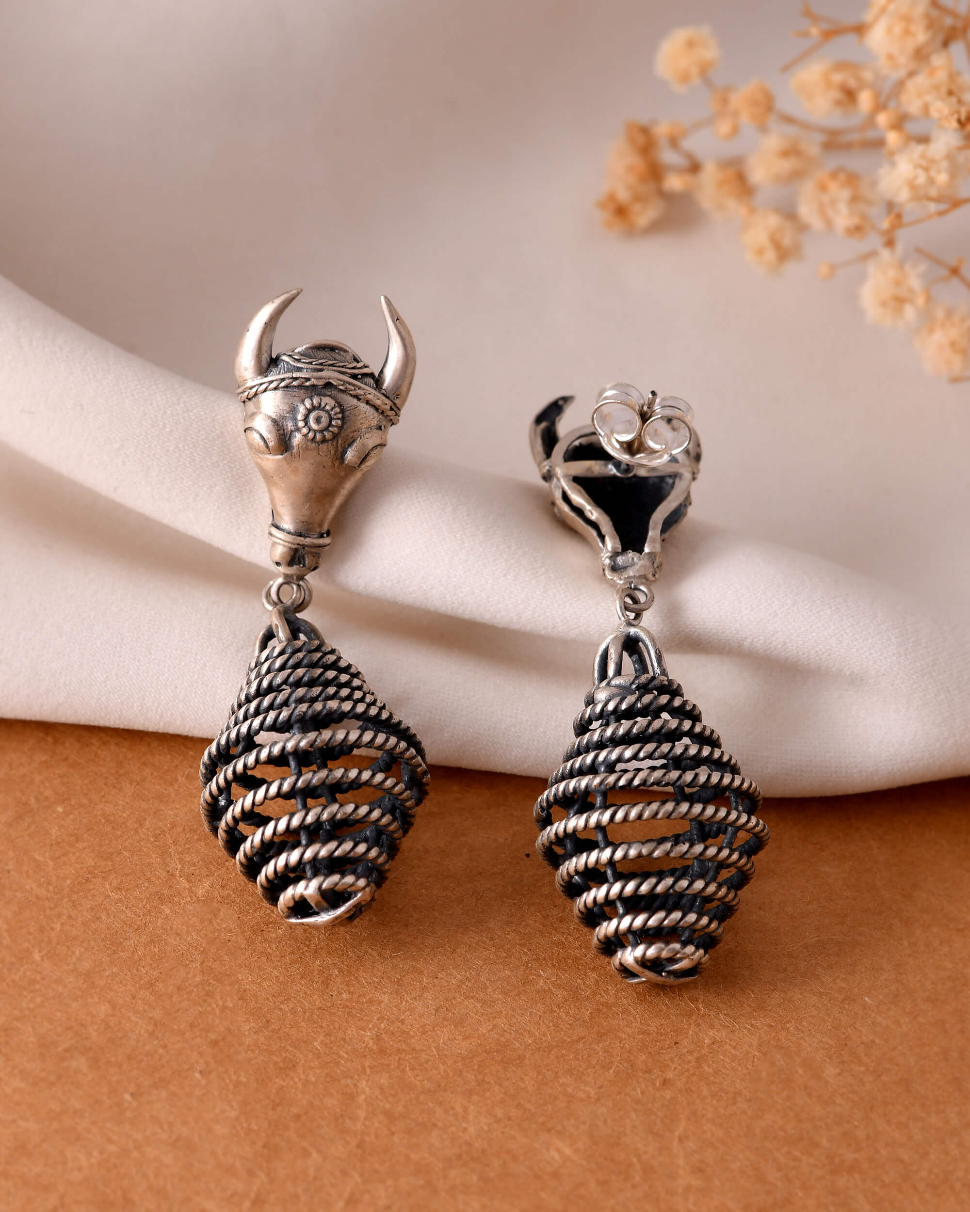 Kamdhenu silver earrings