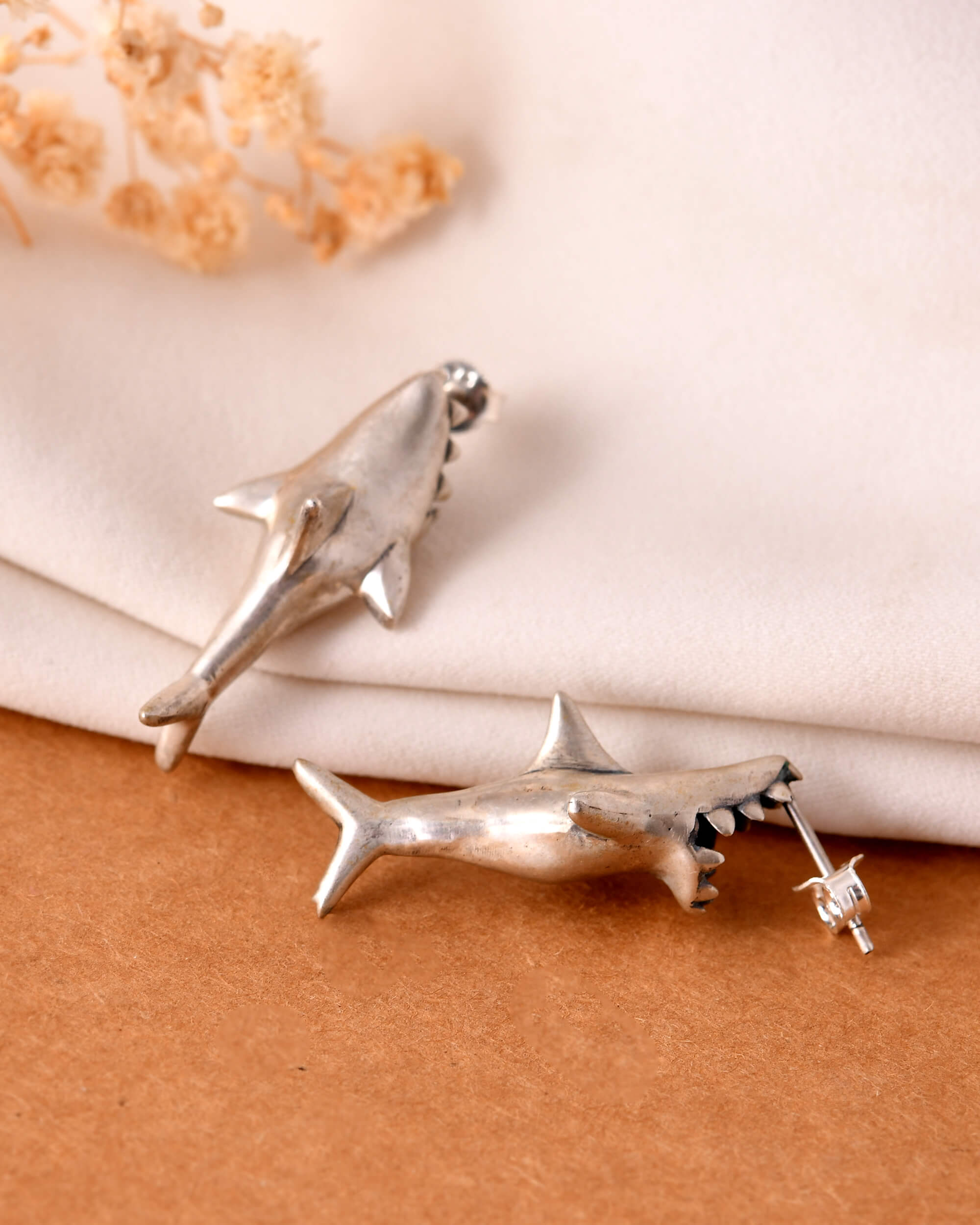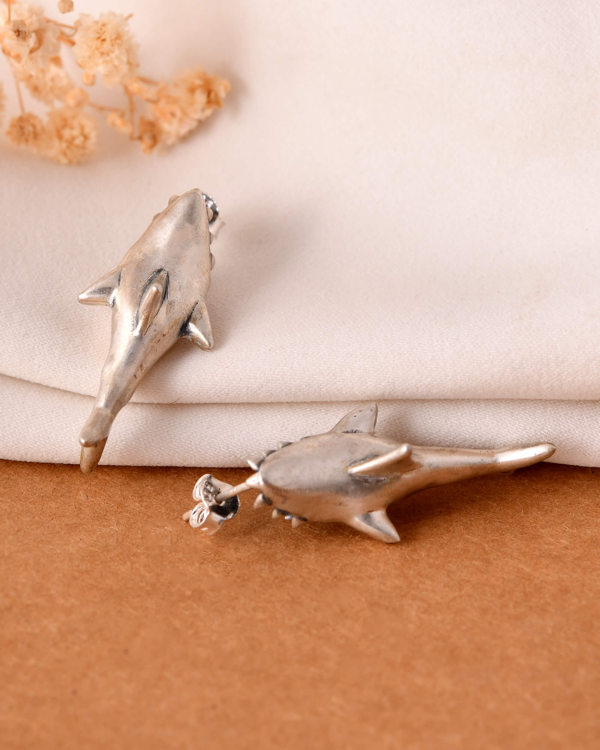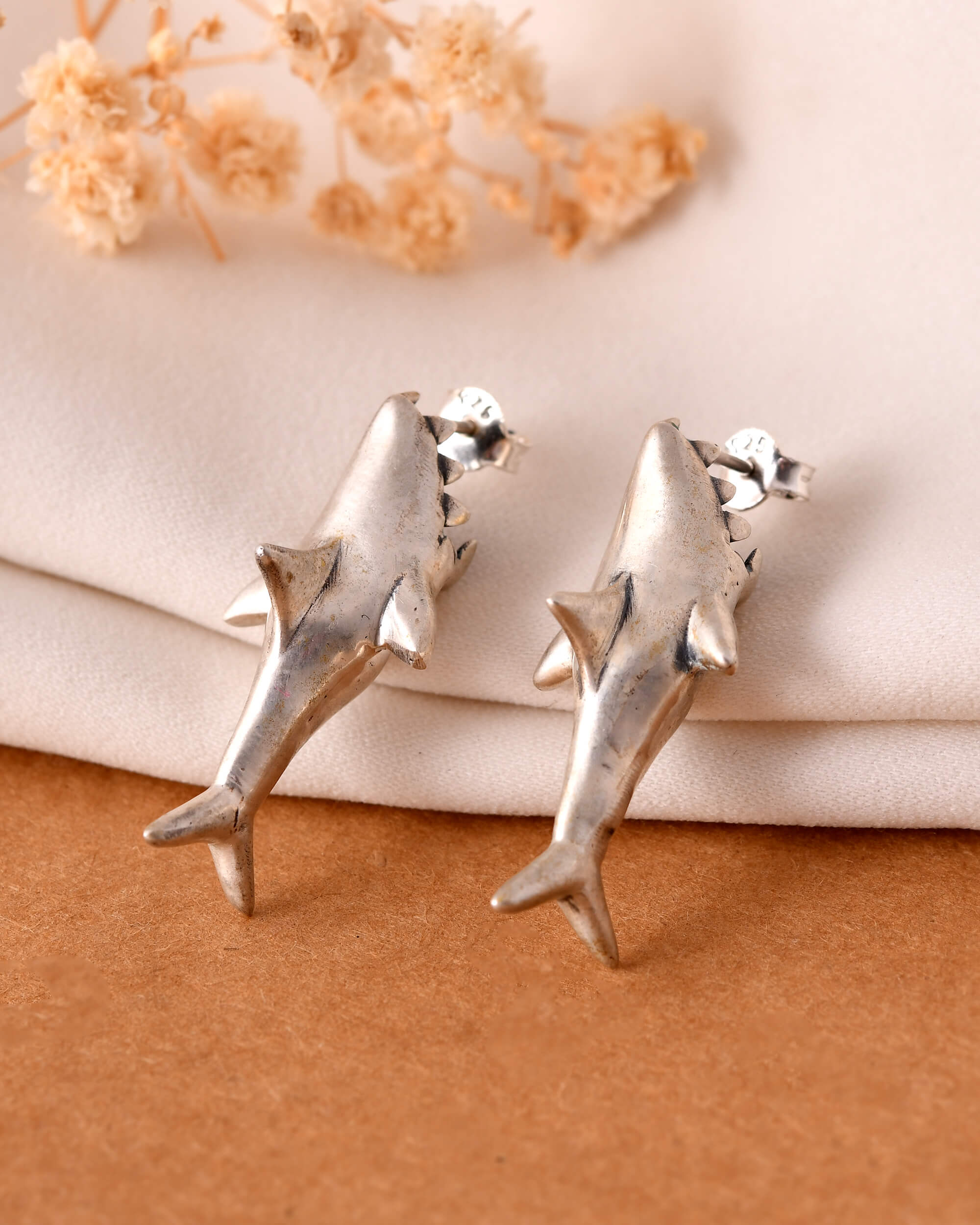 Shark silver earrings studs