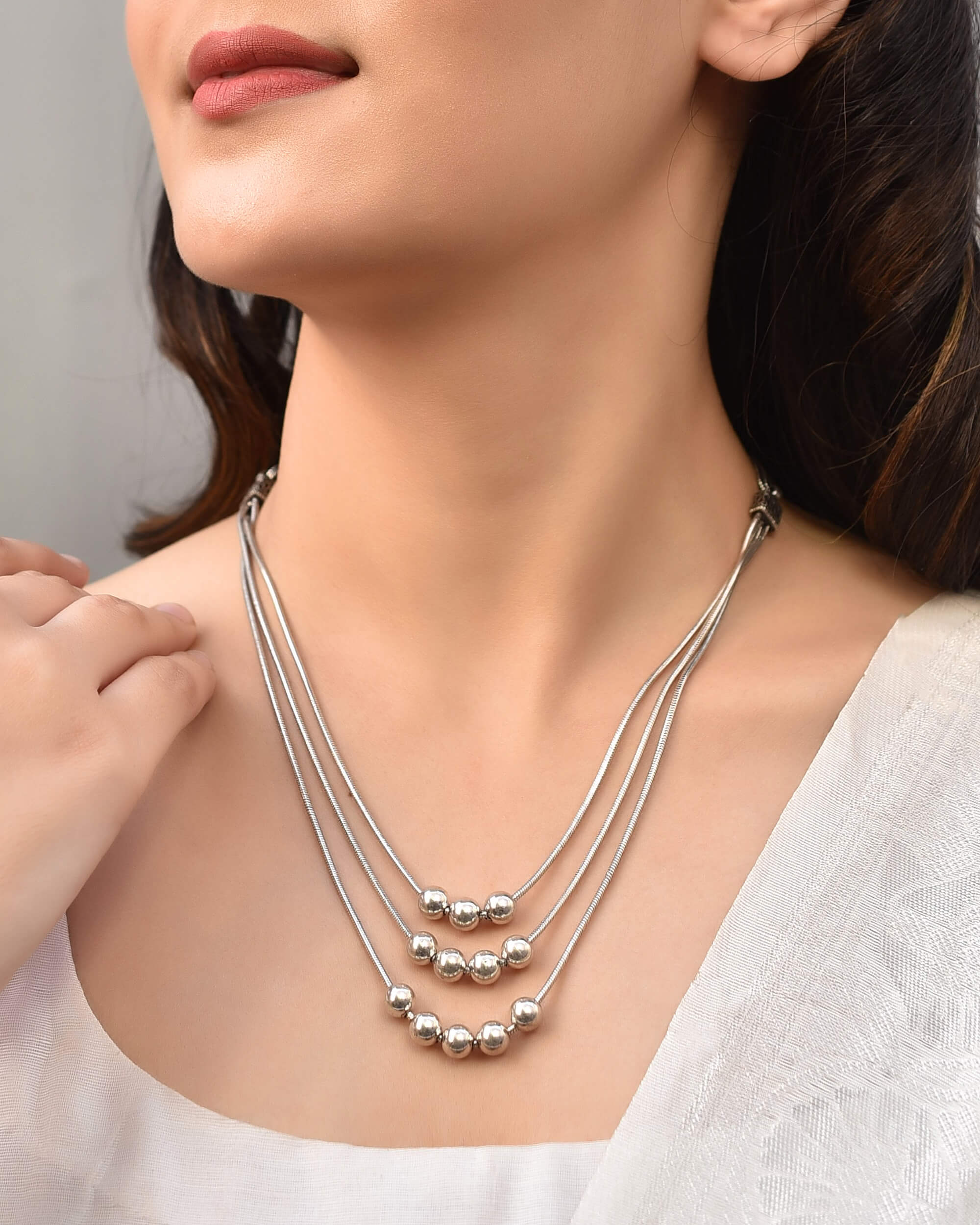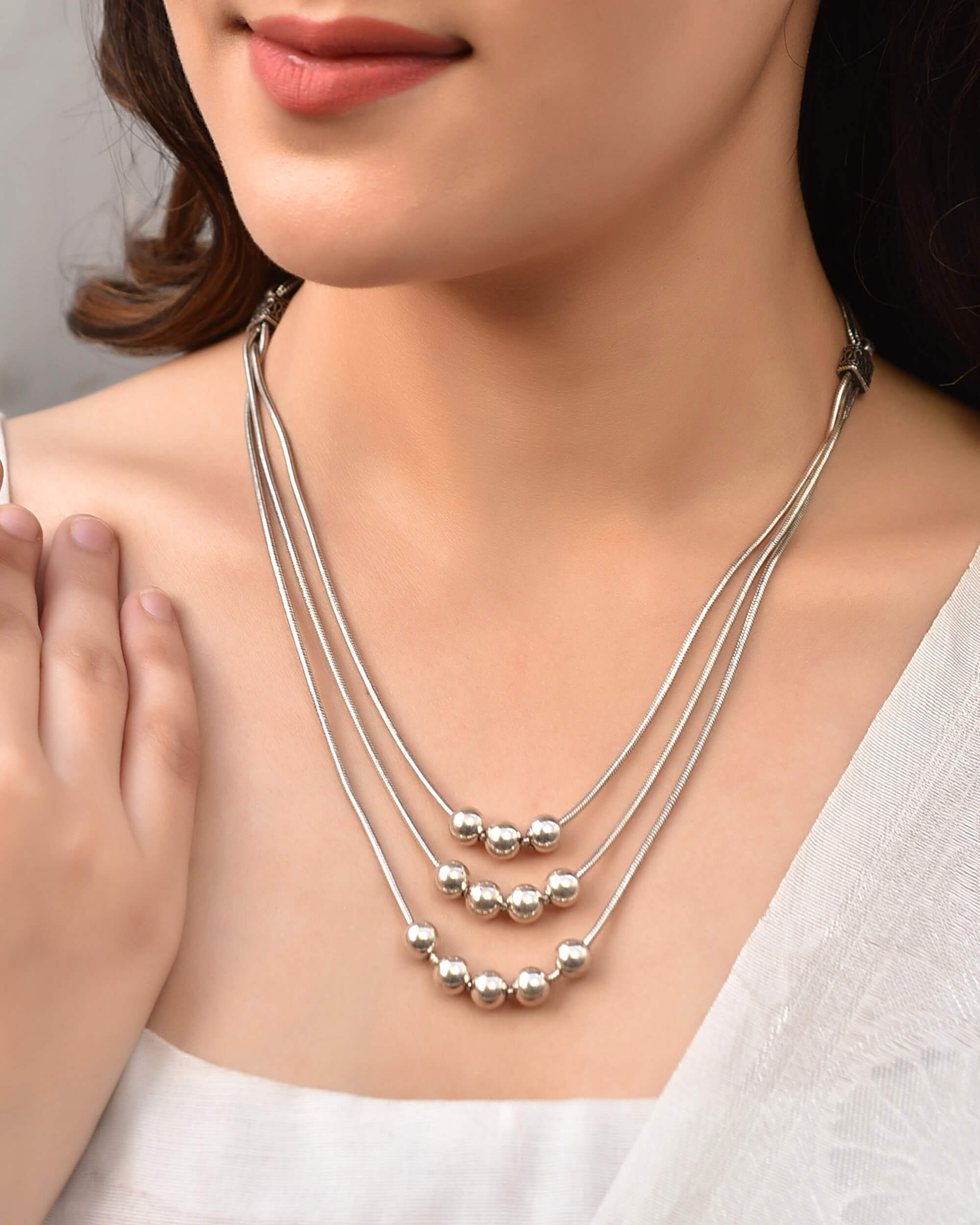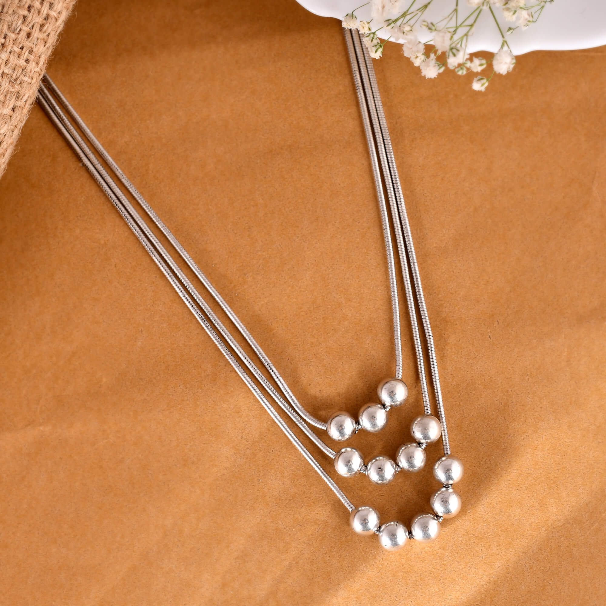 Upgrade your style with our 3 Line Silver Necklace. Crafted with precision, this elegant necklace adds a touch of sophistication to any outfit. With its three sleek lines, it offers a modern and versatile look that will elevate your ensemble. Made from high-quality silver, it's a timeless piece that will never go out of style.