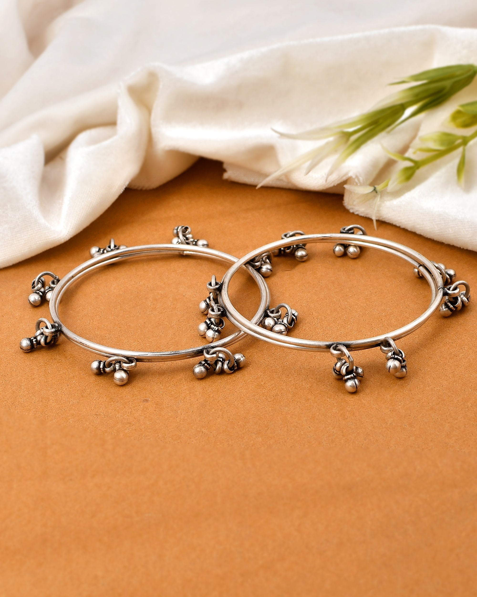 This Ghungroo Bangle is made of lightweight sterling silver for a comfortable fit. The traditional design features an intricate ghungroo pattern, making it ideal for casual everyday wear.