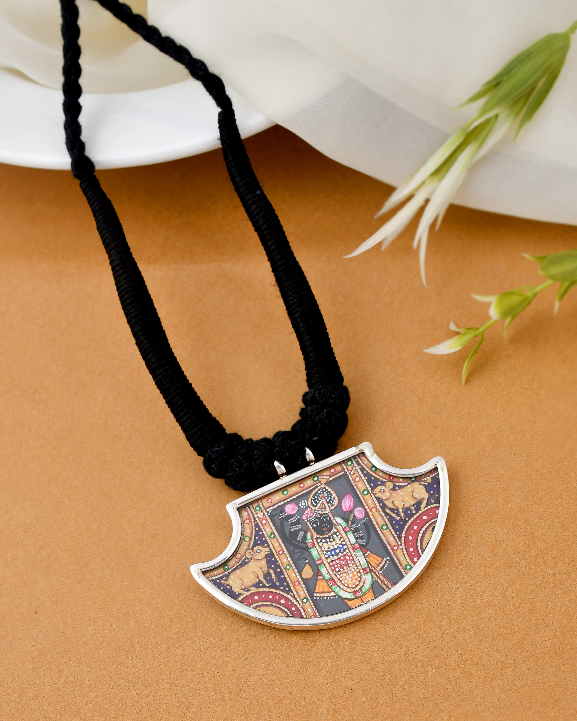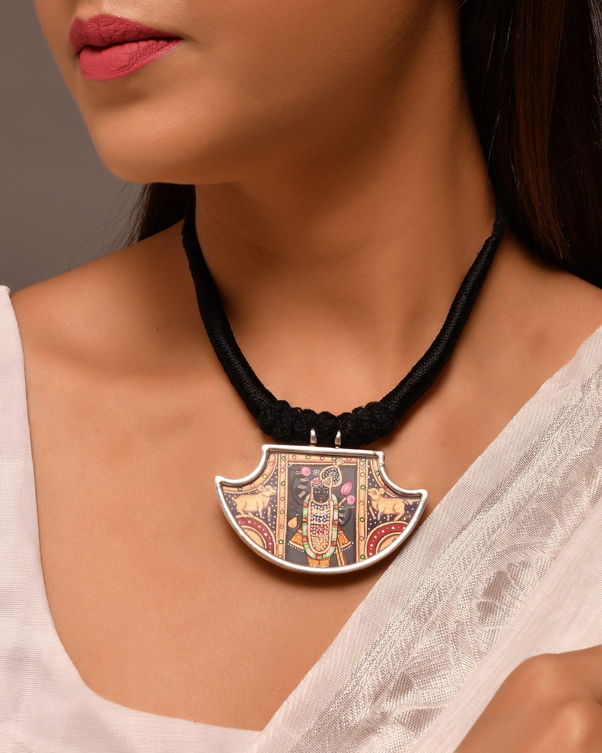 Hand-painted Shrinathji silver necklace