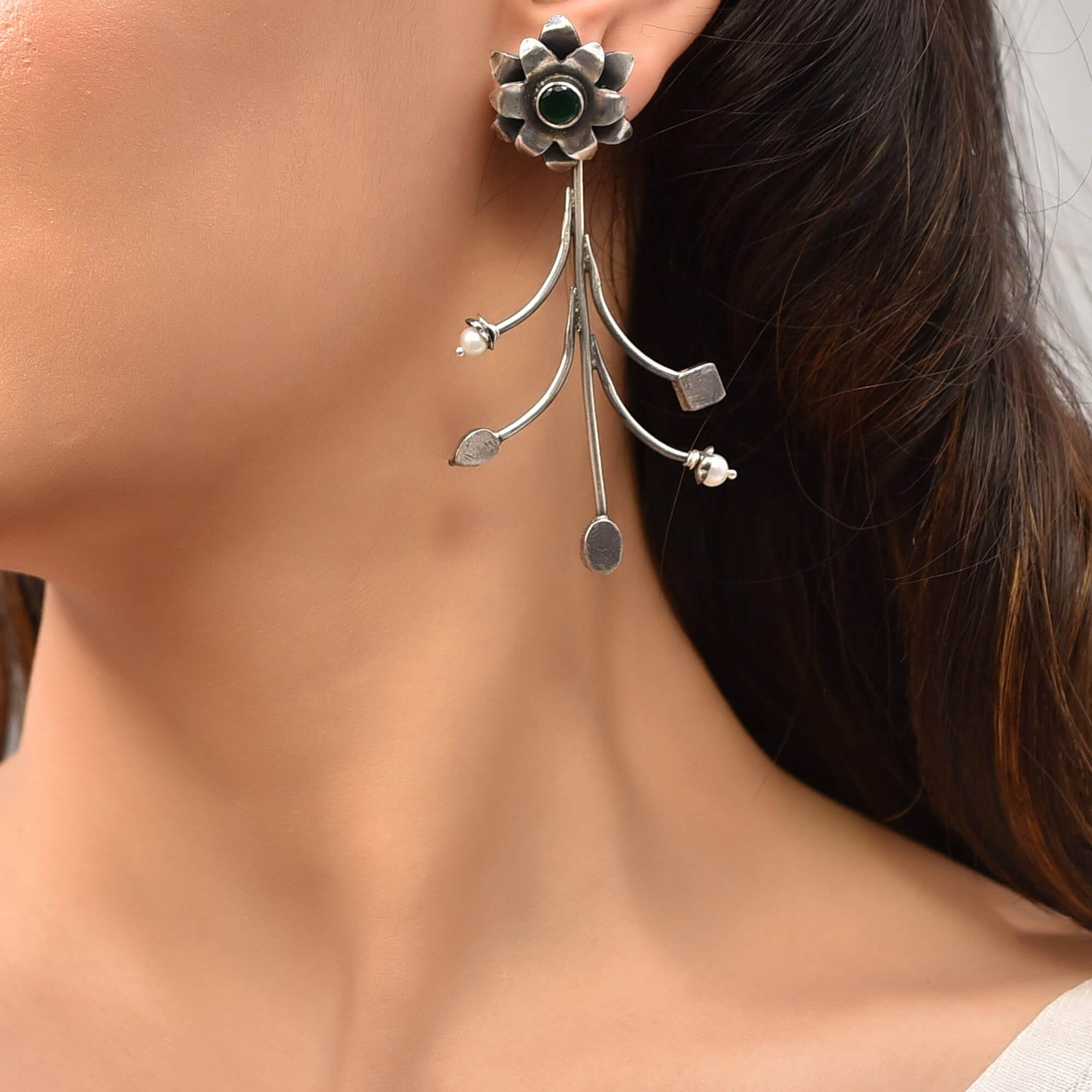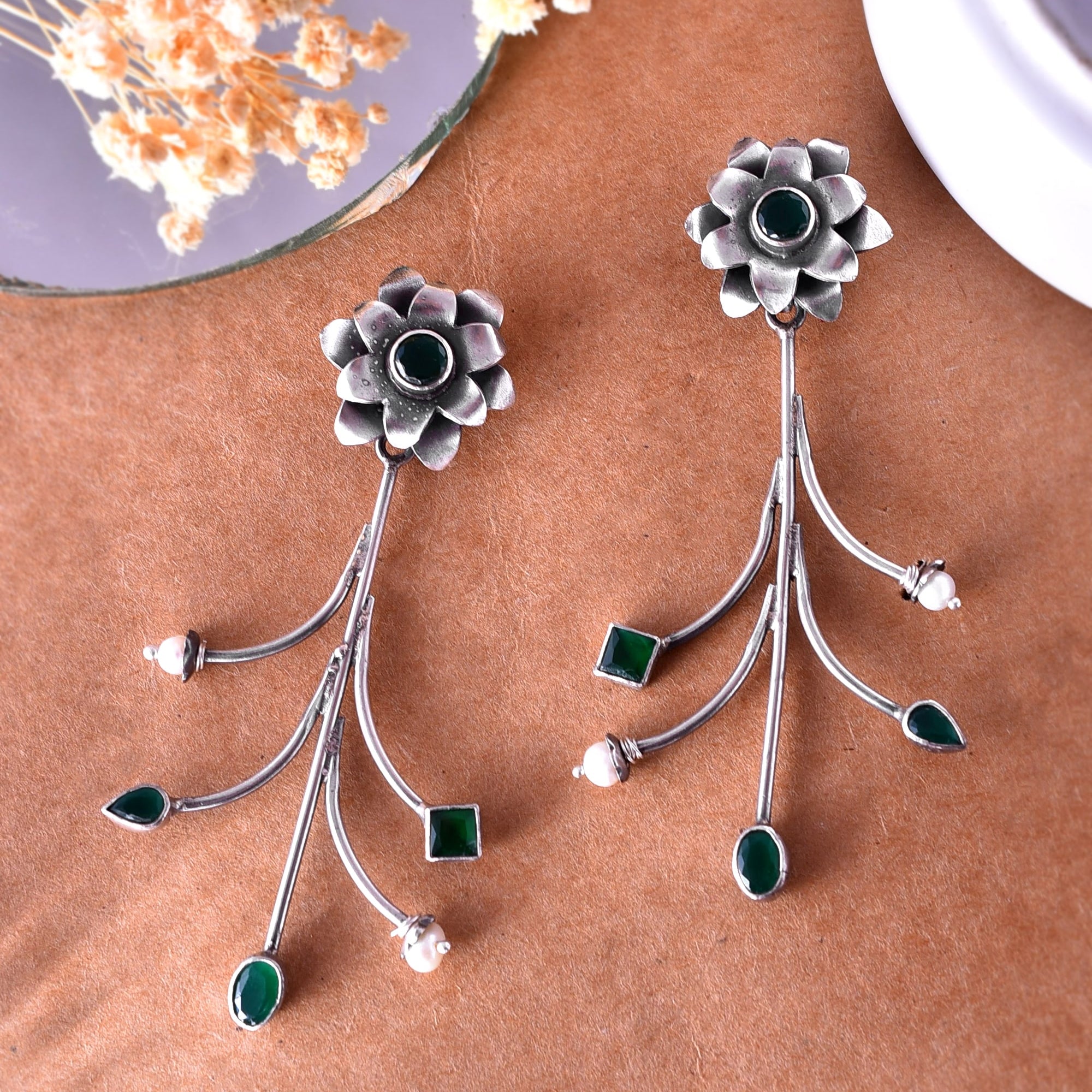 Ahana Green Silver Earrings