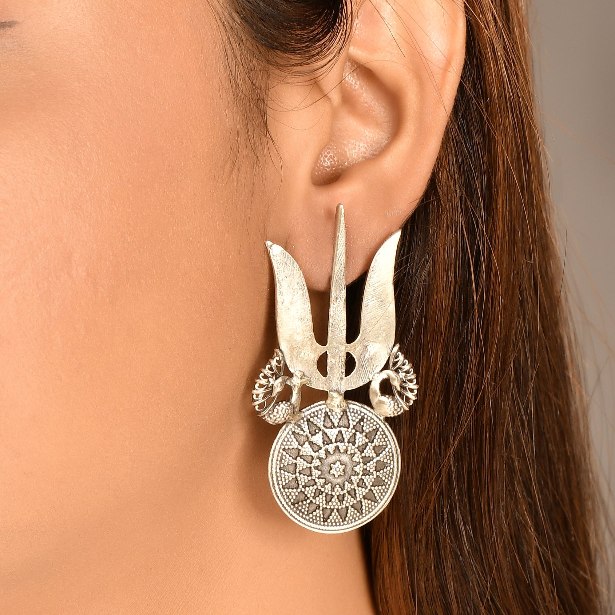 Trishula silver earrings