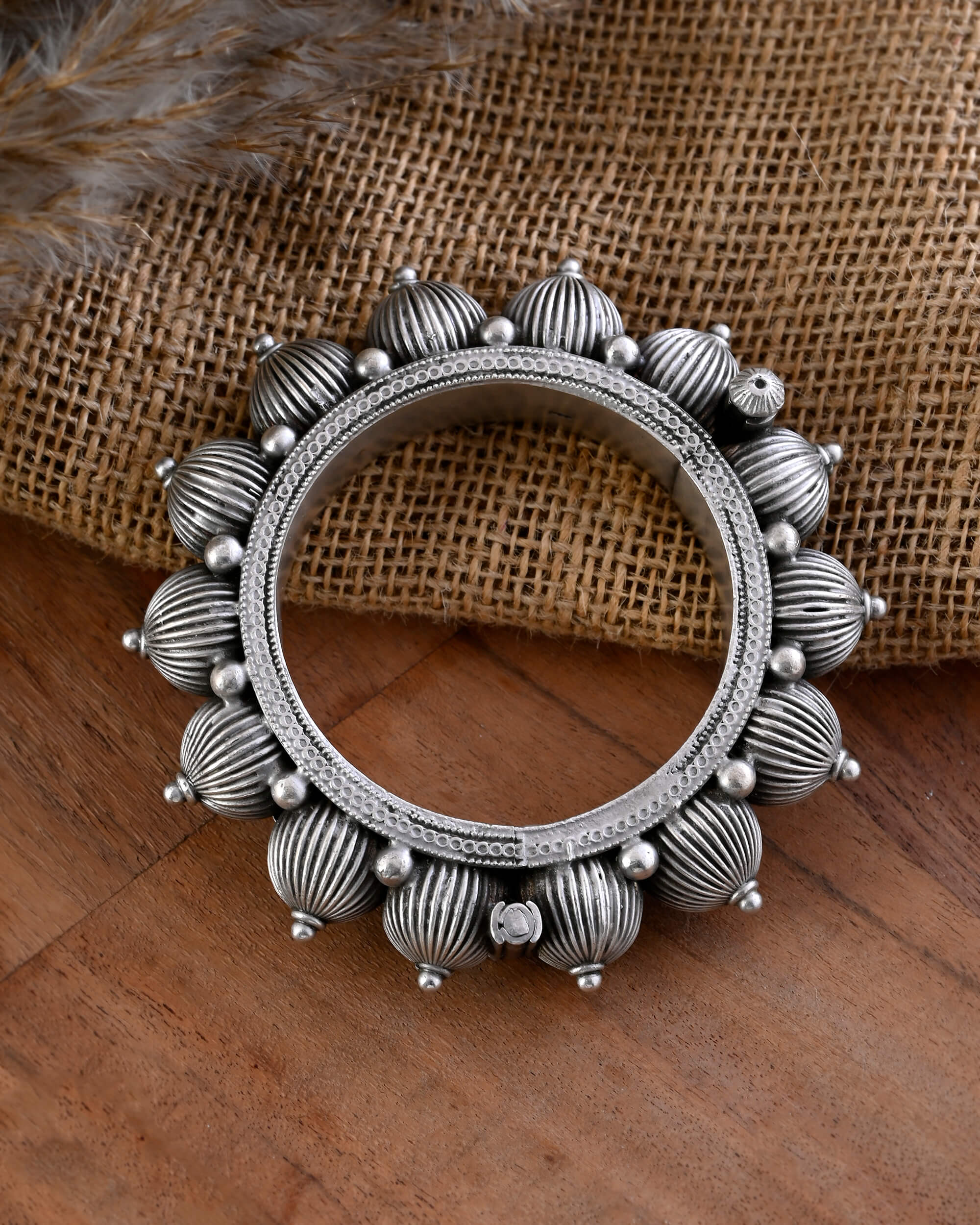 Crafted with premium quality materials, the Divya Silver Bangle stands out with its unique design. Elevate any look with this elegant accessory, perfect for any occasion. Experience luxury and sophistication with every wear. Invest in timeless style with the Divya Silver Bangle.