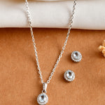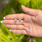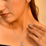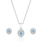 Delicate and refined, this sky-blue set features an oval-cut center stone surrounded by a halo of CZ sparkle – perfect for formal occasions.